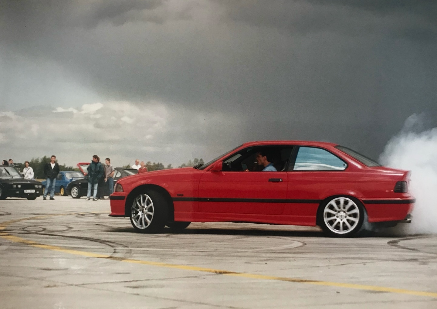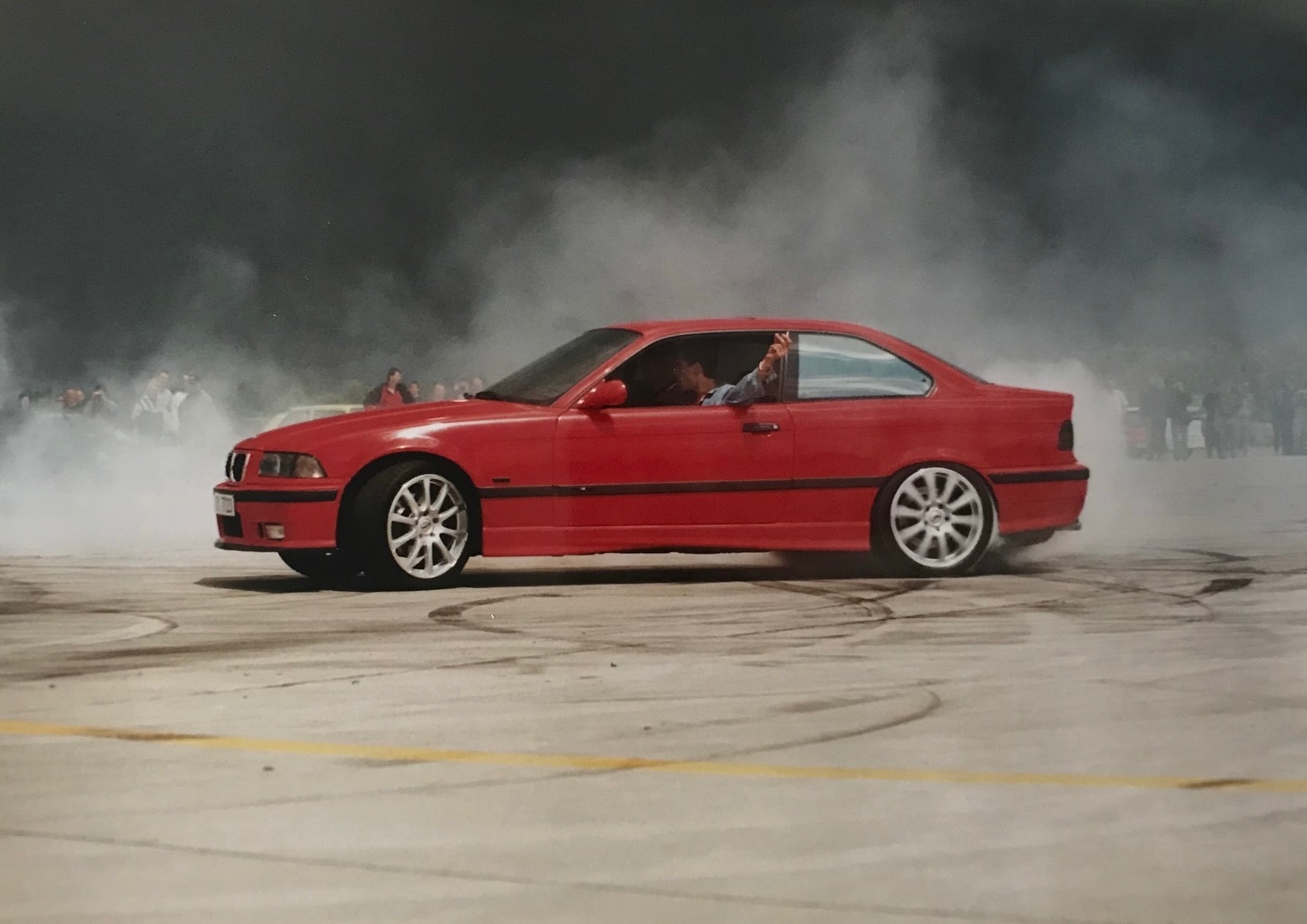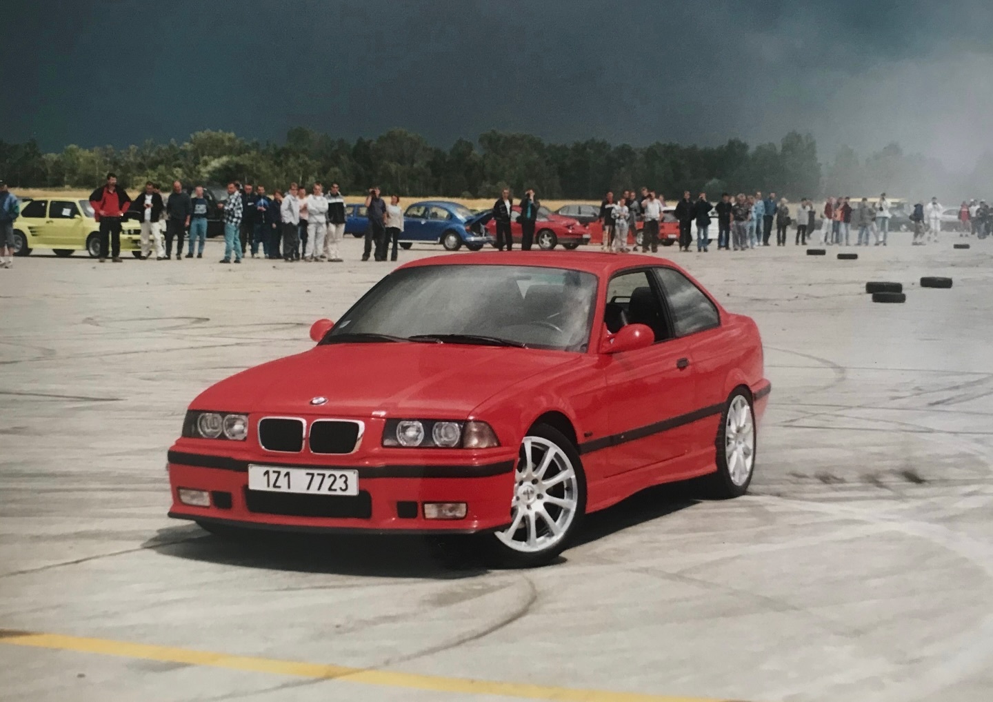 BMW M3 (E36) řádí na tuning akci v Hradci Králové, rok 2002.
