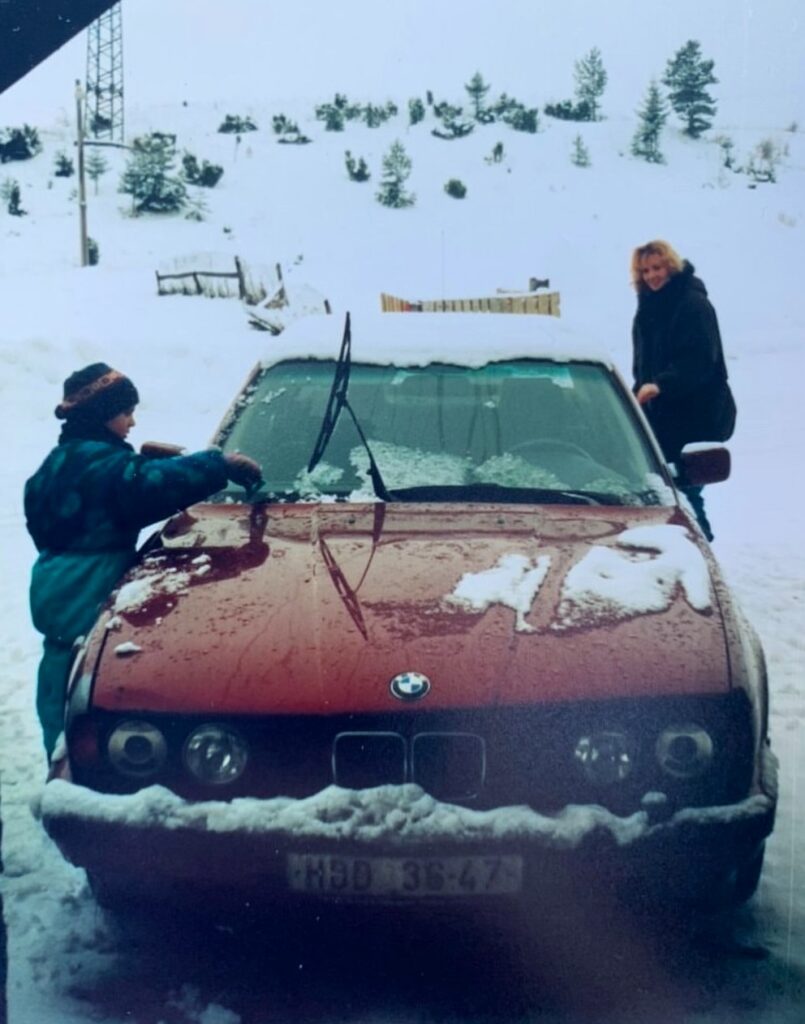 - BMW E34: i v zimě připravené vyrazitV zimě je důležité vozidlo vždy před jízdou řádně očistit. Momentka ze zimní dovolené rodiny Šarounových, kterou v 90. letech absolvovali v Tatrách se služebním vozem hlavy rodiny – BMW řady 5 (E34). Zdroj: soukromý archiv pana Filipa Šarouna. Děkuji za zaslání a důvěru.
