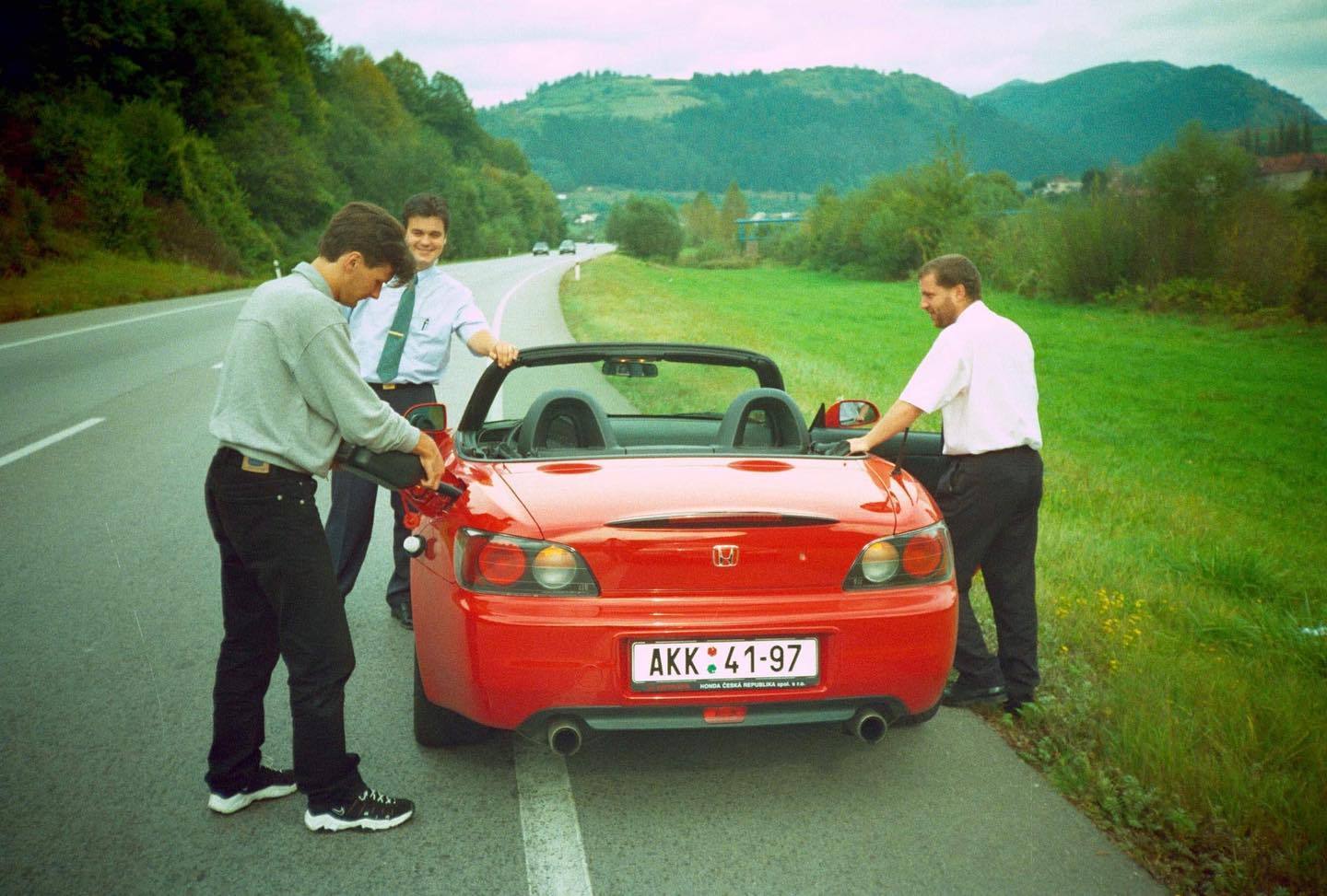 Pan Aurel K., jenž 20 let pracoval pro HONDU na Slovensku, upřesnil, že červená S2000 s poznávací značkou AKK 41-97 byla DEMO auto Hondy, které používali nejen novináři, ale i dealeři. A co víc? Dobové fotky prokazují, že auto mělo černé dvojče, vozící o číslo nižší poznávací značku!