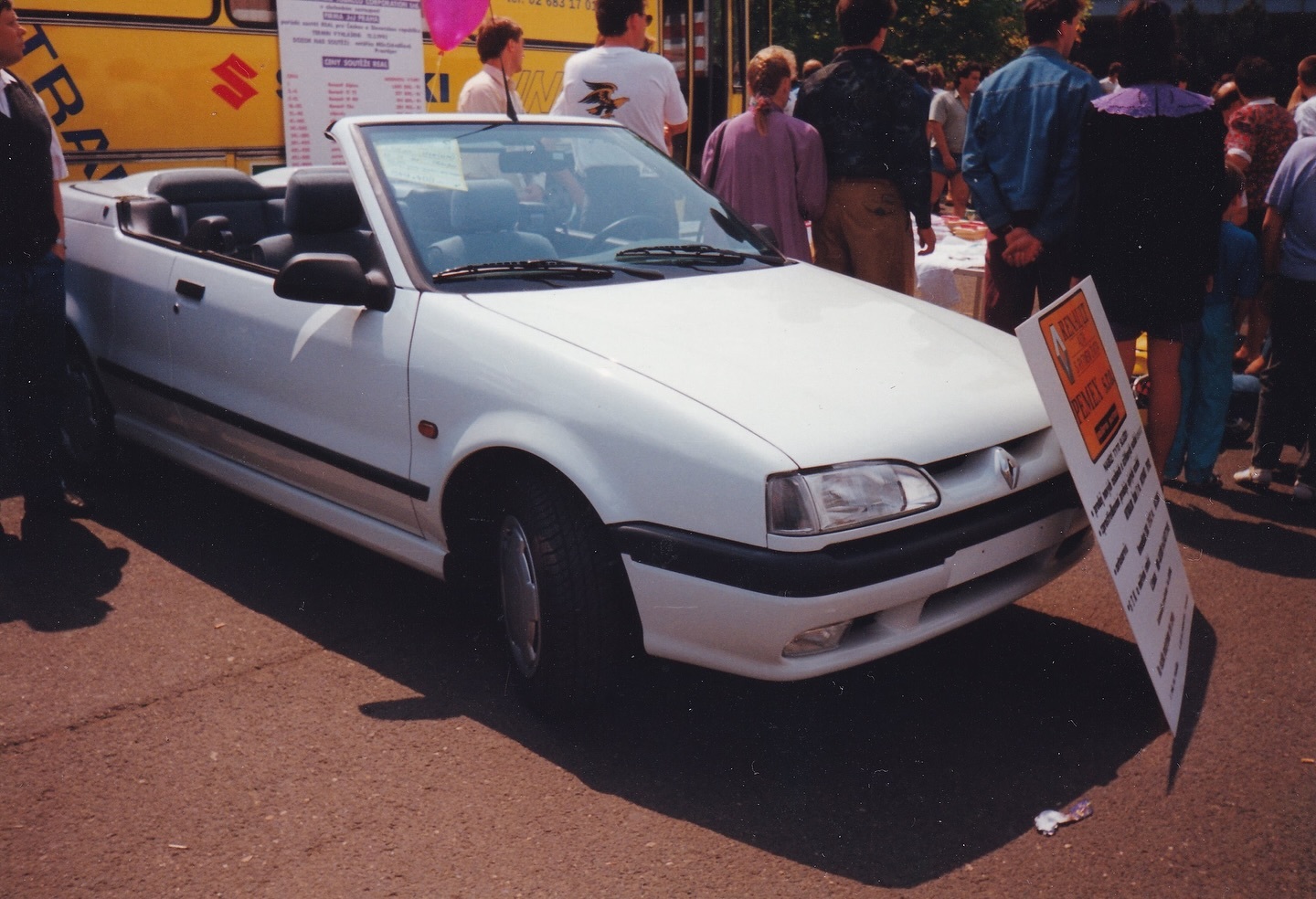Krásný a dnes už velmi málo vídaný RENAULT 19 cabrio (facelift), vystavený firmou PEMEX s.r.o. na AUTOSALONU TEMPO v Litoměřicích 15. května 1993